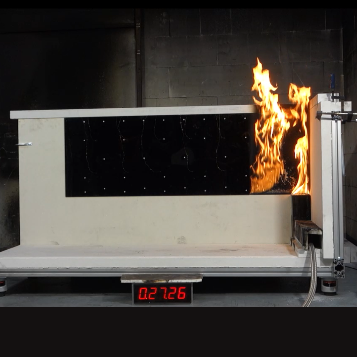 Im Fokus standen Versuche zur Brandausbreitung an Polymethylmethacrylat (PMMA) – besser bekannt als Acrylglas. Der Werkstoff eignet sich aufgrund seines definierten Brandverhaltens besonders gut für reproduzierbare Untersuchungen und die Ableitung belastbarer Simulationsdaten.